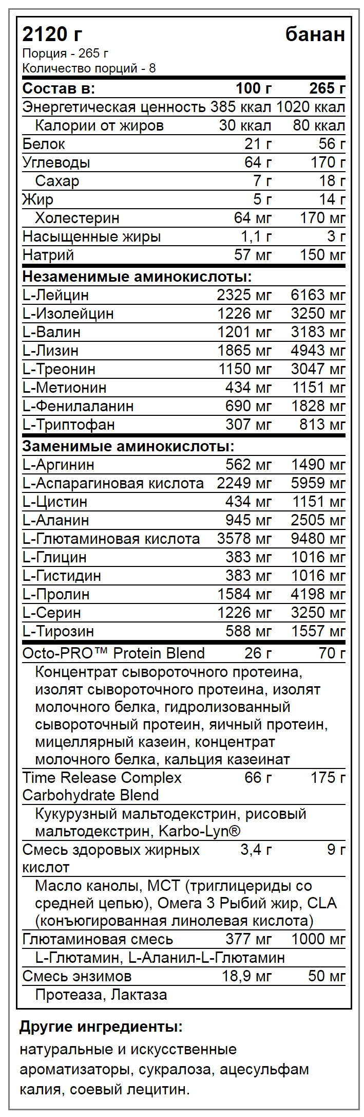 Muscle Juice Revolution 2600 содержит: